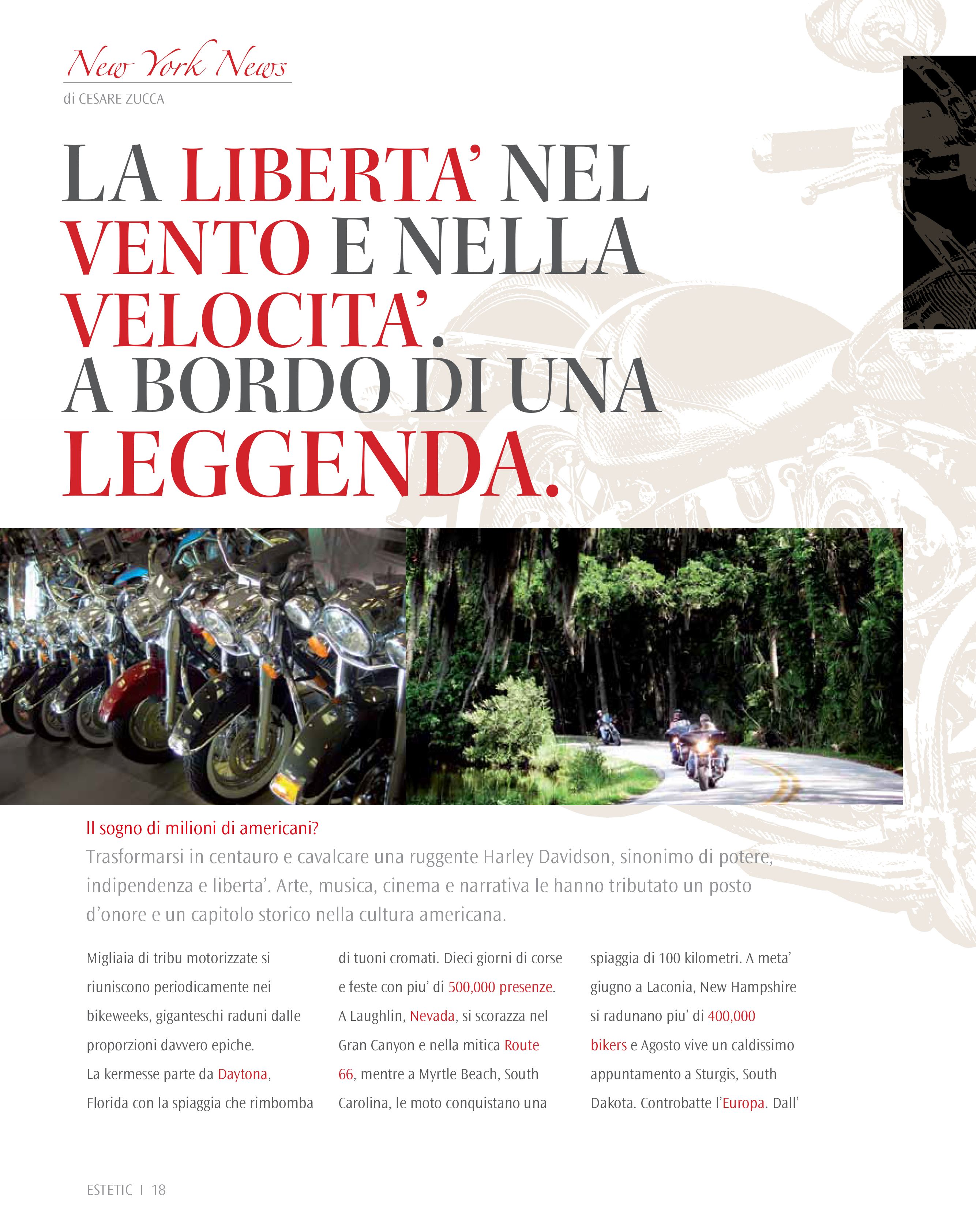 Trasformarsi in centauro e cavalcare una ruggente Harley Davidson, sinonimo di potere, indipendenza e liberta’. Migliaia di tribu motorizzate si riuniscono periodicamente nei bikeweeks, giganteschi raduni dalle proporzioni davvero epiche.