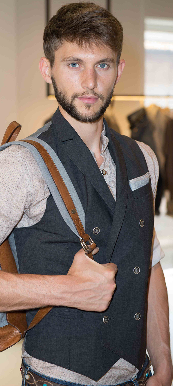 Dark jackets, drainpipe pants, waistcoats and major focus on details, biker jackets in washed black nappa, with zips flaunted as crucial elements,