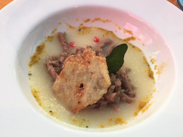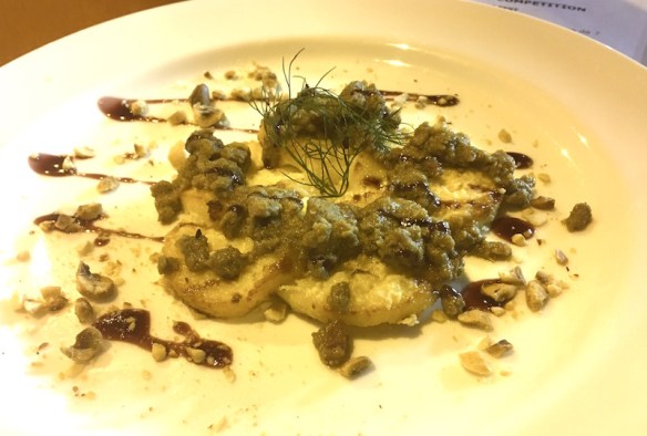 Talking about tradition & innovation, the Remo Brindisi Institute in Comacchio, Ferrara, was inspired by their own a national treasure: the eel served with which orange flavoured vegetable couscous and crisp bacon, getting my enthusiastic votes…and the prizes for best presentation and popular jury favorite.