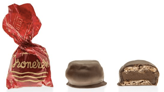 Top of the line is the original totally handmade White Dronerese, created in 1890 and made of two crumbly meringues and a heart of chocolate, rum and custard (the classic recipe) or with Gianduja cream, with Piedmont Hazelnuts IGP.