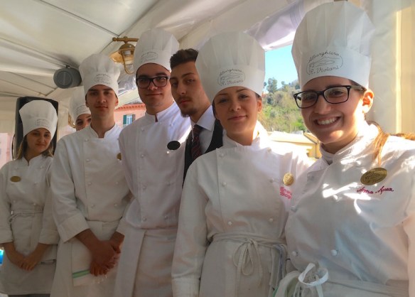 More show cooking in the afternoon with chef Domenico Iavarone of the elegant Jose Restaurant in Torre Del Greco, featured in the Michelin guide and  awarded with a Cappello Espresso Award. His dish: Leonessa riccioli pasta cooked in seaweed, saury fish marinated in lemon, tomatoes, basil. I loved it!
