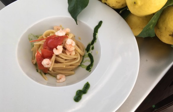 When fusion works! Mimmo di Gregorio from Osteria lo Stuzzichino, Sant’Agata sui due Golfi went for tradition, taste and the local Nassa di Crapolla red shrimps, mixed to spaghetti chitarra Leonessa, juicy cherry tomatoes and lemon zest. Simplicity and Taste at his best!