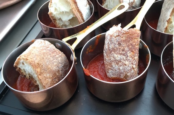 Grand finale with the iconic Salsa di Pomodoro, tomato sauce made from the youngest Chef of the Congress: Maicol Izzo from Michelin star Piazzetta Milù in Castellammare di Stabia. Escorted and supported by his dad Michele (that ‘s so Italian…) Maicol created a new kind of bread whose dough has been prepared using the acidula water springing out from the  local source. The bread must be dipped down into the traditional tomato sauce (more than 6 hours of preparation) and then you’ll taste this heaven…Bravo Maicol!