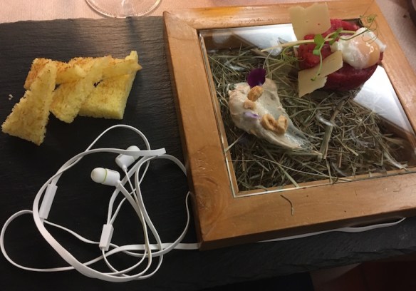 Yes , it happened when an extraordinary dish was served on a wooden box completed with hearphones. Eat and listen to the really recorded sound of the surrounding hills…