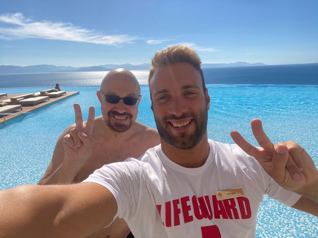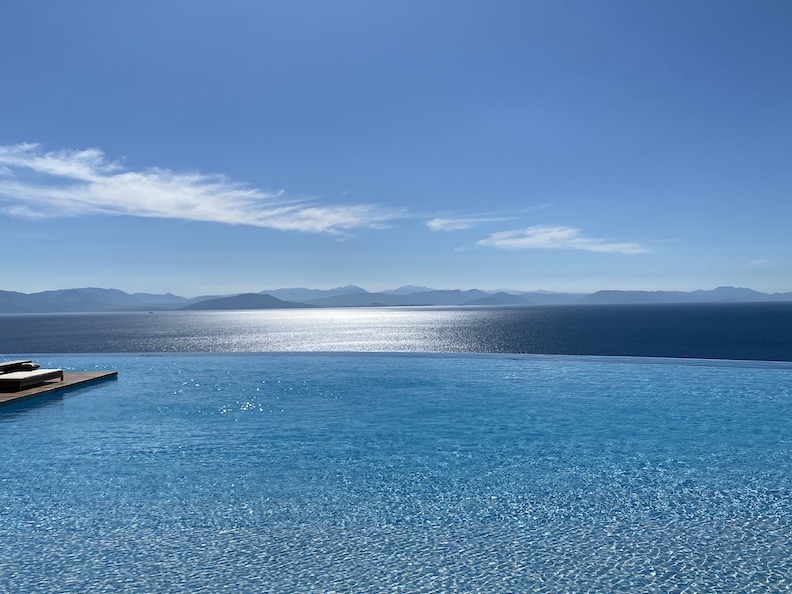 beach and the immense swimming pool, a truly amazing endless space that literally seems to plunge into the blue sea.