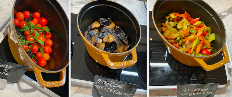 You will find fresh homemade bread, cold cuts, salmon, local cheeses, a great variety of yougurt, fresh honey that melts under your eyes, a huge choice of vegetables, cooked or sautéed, such as mushrooms, potatoes, yellow and red cherry tomatoes and ratatouille,