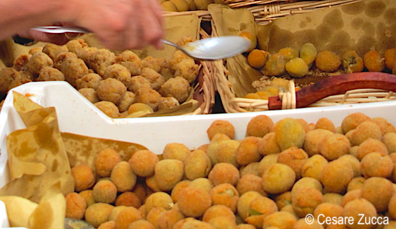 The tripe omelette rolled and cut into strips sautéed in a tomato sauce, the Pesaro’s pasticciata a stew of beef in red wine with lard, cinnamon, cloves, tomato sauce. In Senigallia , the specilaty is the cutanèi , kind of “poor” dumplings made of water, flour and a few eggs.The scepter, however, goes to vincisgrassi, the most famous pasta of the Marche region, cut into large strips, seasoned with chicken giblets and baked in the oven. You ‘ll find many rabbit dishes, raised in inland areas between Ascoli, Macerata and Fabriano, the tastiest is the one in porchetta, stuffed with spices and wild fennel or stewed with white wine, garlic, chilli and aromatic herbs. Last but not the least the Ascoli olives, stuffed with meat, breadcrumbs and grated cheese, then floured, passed in egg, in breadcrumbs and fried.