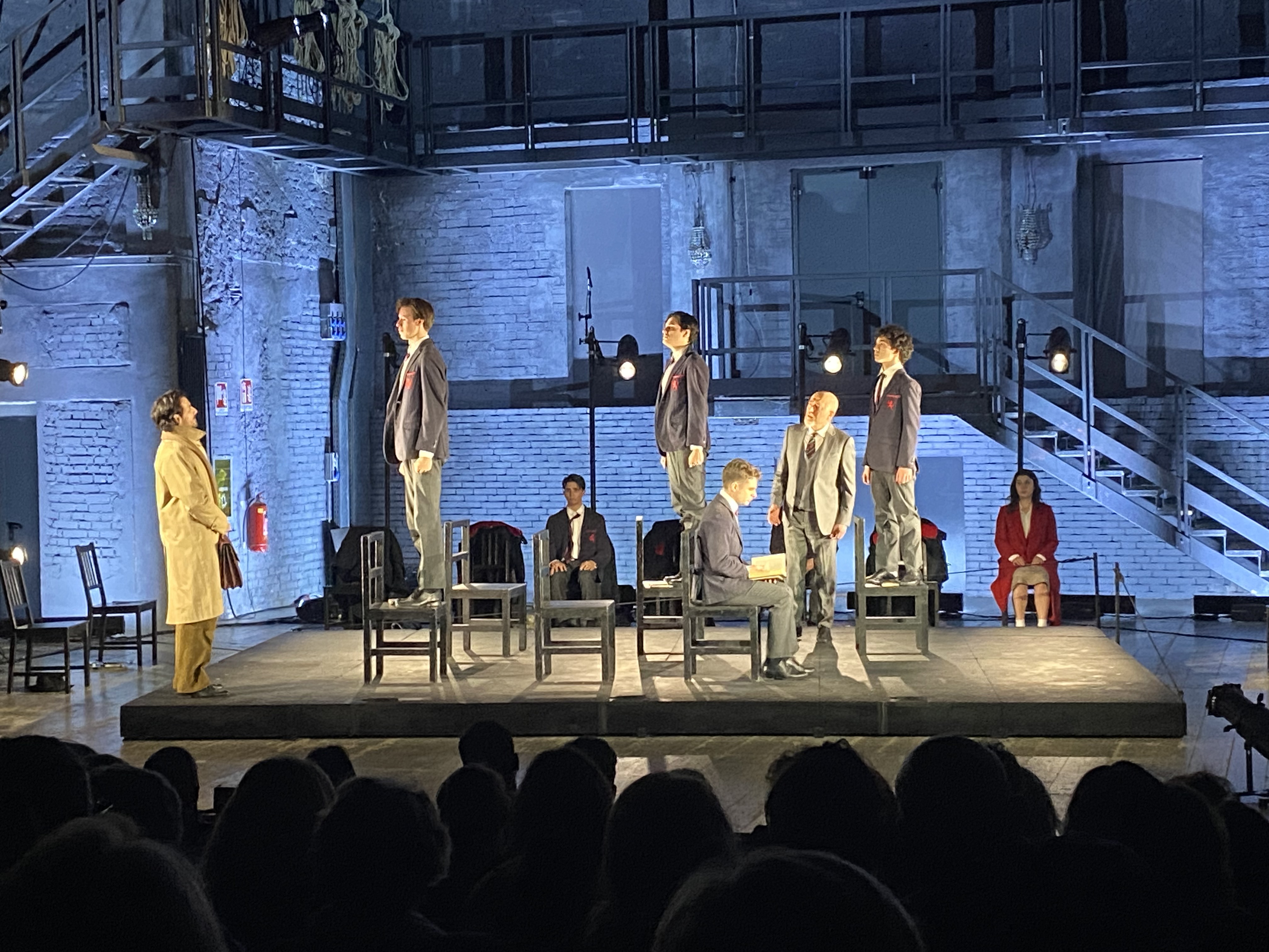 Luca Bastianello plays the charming Professor Keating, expelled from a prestigious American college for his educational methods too unconventional with respect to the strict US protocol. Luca is surrounded by his six young students.Excellent lighting and musics.among the “chair choreography” that evidences places and times.