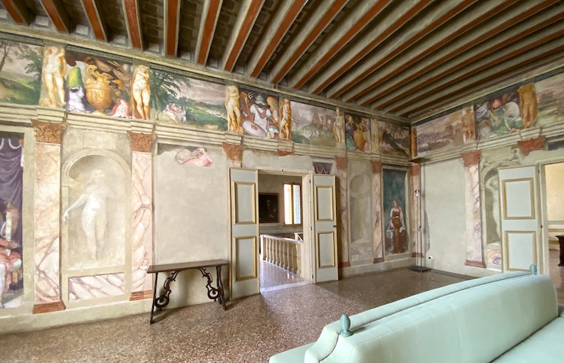 Today I take you to Villa Dei Vescovi, a spectacular Venetian villa located in Luvigliano, a hamlet of Torreglia (Padua, Italy) . This property is one of the jewels adopted by FAI is a non-profit foundation established in 1975, using the National Trust as a model, with the aim of protecting and enhancing Italy’s historical, artistic and landscape heritage, a perfect example of the humanistic culture, which wants to combine art, architecture and landscape in a daily experience that can stimulate towards elevated thoughts . The construction dates back to the Renaissance and is inspired by a Roman domus. It can be considered the first example of the new taste for the rediscovered Roman classicism in the hinterland of the Serenissima Venezia.The interior of the villa, divided on the main floor into the Hall of Ancient Figures, the Putto Hall, the Dining Hall (or of Apollo and Orpheus) and the bishop’s private rooms, was frescoed in the years 1542-1543 by the Flemish painter (active in Venice) Lambert Sustris, responsible for the frescoes in the internal rooms, where he wanted to recreate the architecture and external views of the villa in a perspective game that unites the interior with external nature.