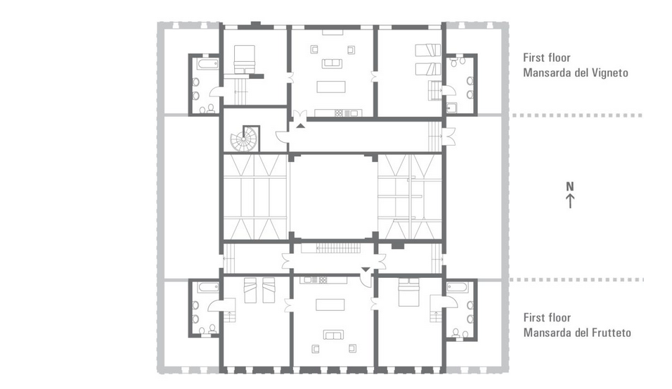 What, perhaps, you still don’t know is that the Villa is equipped with two “secret” apartments inside the central building: the Mansarda del Vigneto, boasting views over the vineyard and the Mansarda del Frutteto overlooking the orchards. Both delivering an unforgettable experience, at a cost that will amaze you, if you consider the extraordinary nature of the location, Both delivering an unforgettable experience, at a cost that will amaze you, if you consider the extraordinary nature of the location.