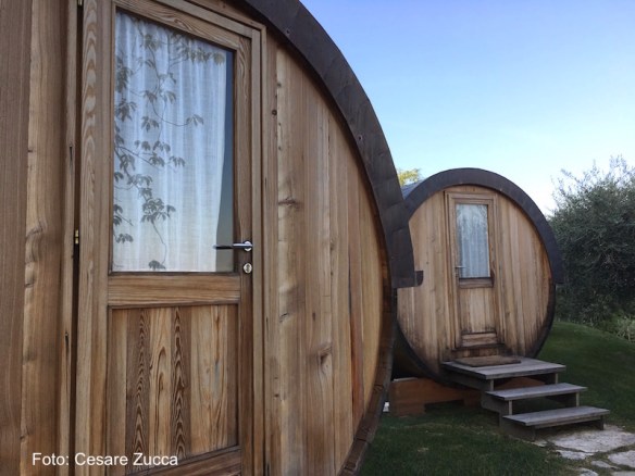 And surprise… In addition to the cosy rooms, you can find some unique accommodations: three huge wooden wine barrels, perfect for an ‘ I love ‘ vacation.