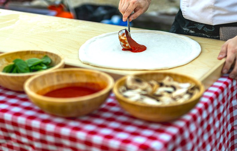 Excellent 5 hours grilled meat by the Alpini group of Soligo; dishes and vegetables from the organic vineyard of Sarah’s Vineyard, cooked by the trattoria Larin da Bepo, the yummy Treviso soppressa with Mauro Pinel’s bread and pumpered by the extra virgin Istrian olive oil Mate produced by Aleksandra Vekic