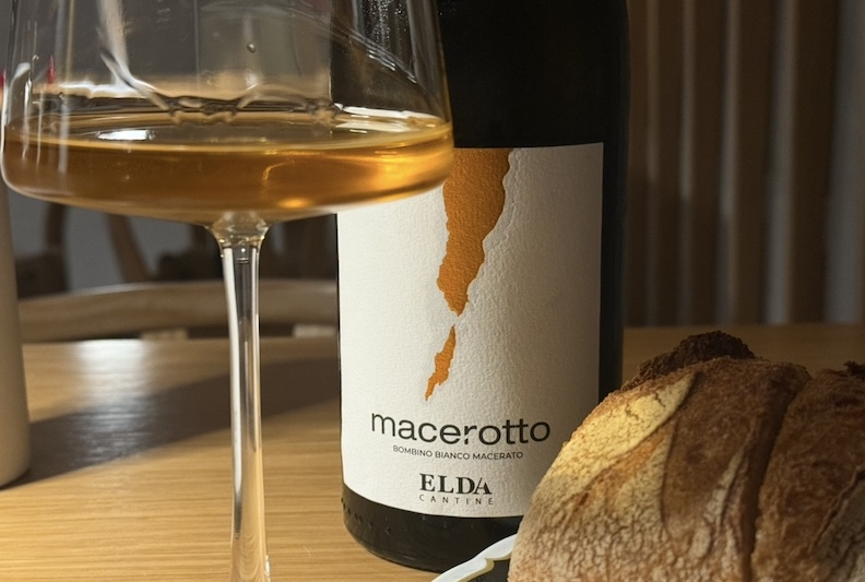 In the glass, a Macerotto Elda made from Bombino Bianco grape