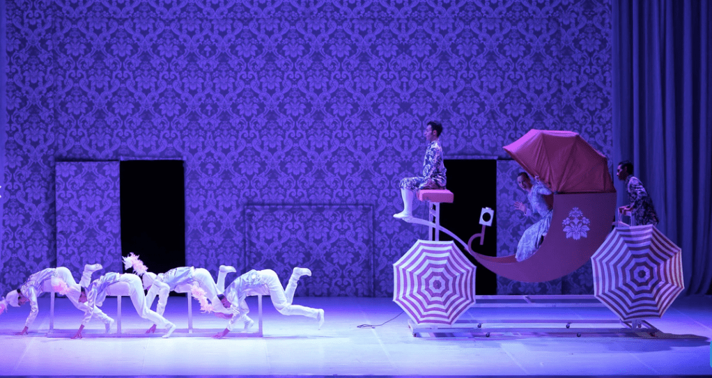 The choreography is praised for favoring inventive gestures and theatrical timing over strict classical form, creating a dynamic and engaging experience. Amazing visual creativity, especially the symbolic costume design—such as Cinderella’s dress blending into the wallpaper to represent her marginal status, mixed to comic scenes, which make the performance accessible to a wide audience.