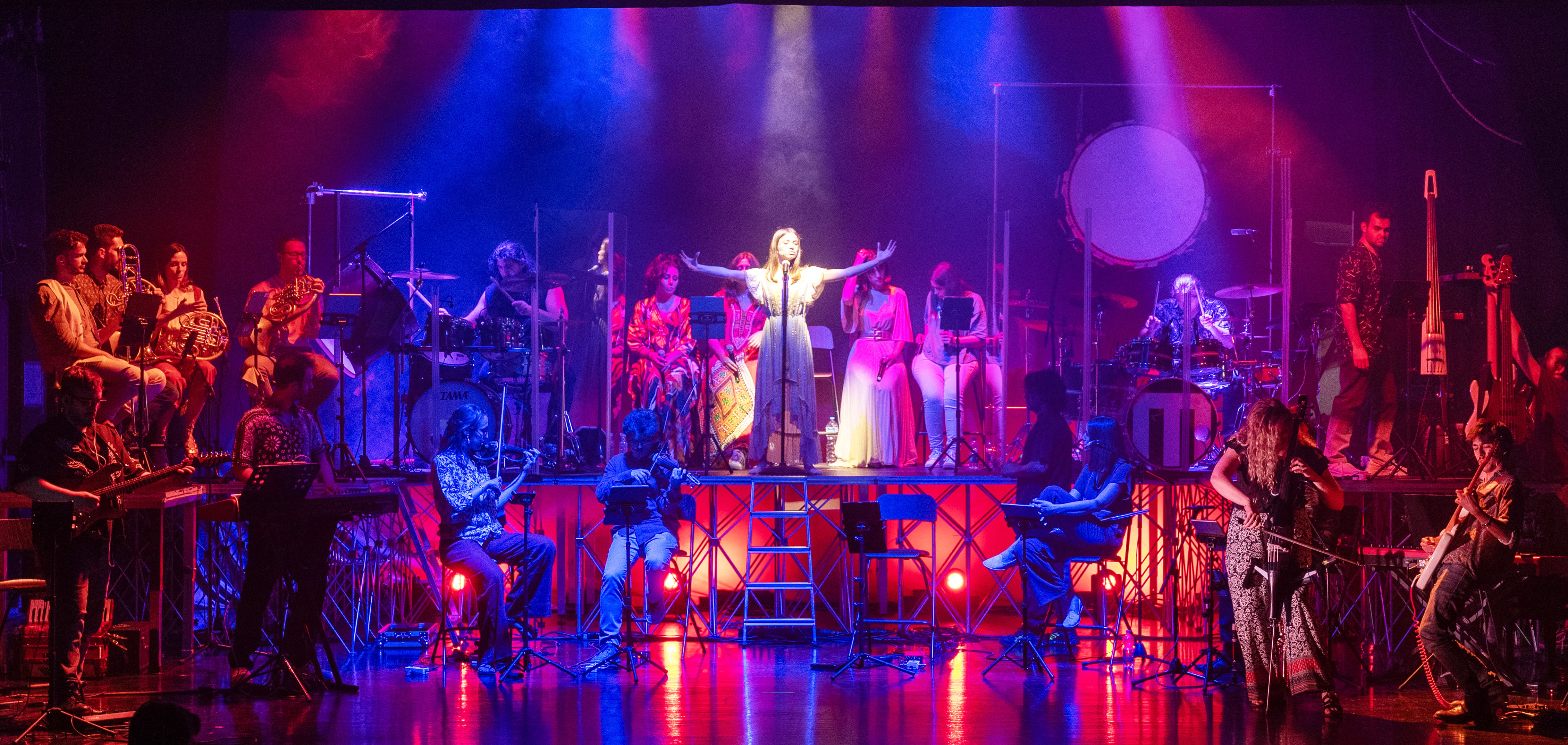 Each part of the concert is crafted as a scene: the singers — through costume changes, choreography, acting, video projections, and themed sets — step into the film inspired by each song.