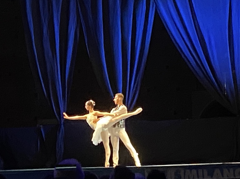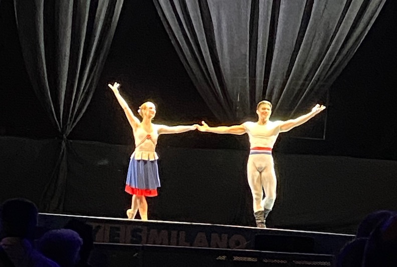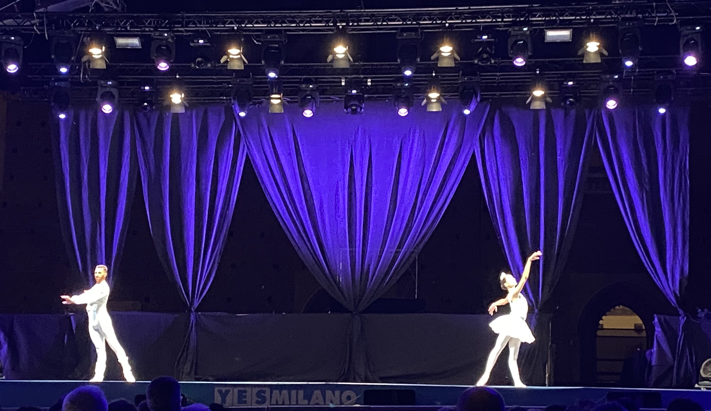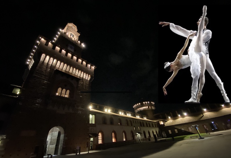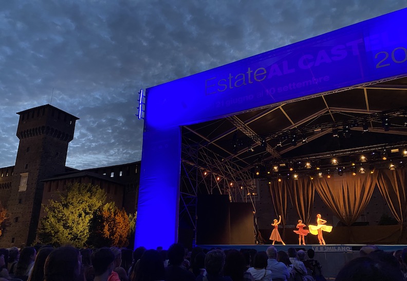 Balletto di Milano performed last night in the enchanting atmosphere of the Castello Sforzesco in Milan.The show Grandi Balletti is a fascinating journey into the world of classical dance. Pieces taken from the great and best-known repertoire, including the pas de deux from Swan Lake, Sleeping Beauty, Le Corsaire and Don Quixote, alternate with neoclassical and choral choreographies created expressly for the Company.Balletto di Milano boasts a young and fierce cast, starting with the couple Amanda Hall and Emmanuel Ippolito who gave us a lively moment from “Flames of Paris, the remarkable chemistry between the very young Annamaria Maestri (Juliet) and the fiery Mattia Imperatore (Romeo), Alessia Sasso and Alessando Orlando in their sultry pas de deux from Ravel’s Notre-Dame-d de Paris.Among them the most applauded couple was Paloma Bonnin whose dizzying fouettes were truly incalculable, perhaps more than the notorius 32… and her partner GianManuel d’Elia engaged in Petipa’s historic choreography for “Corsaire”