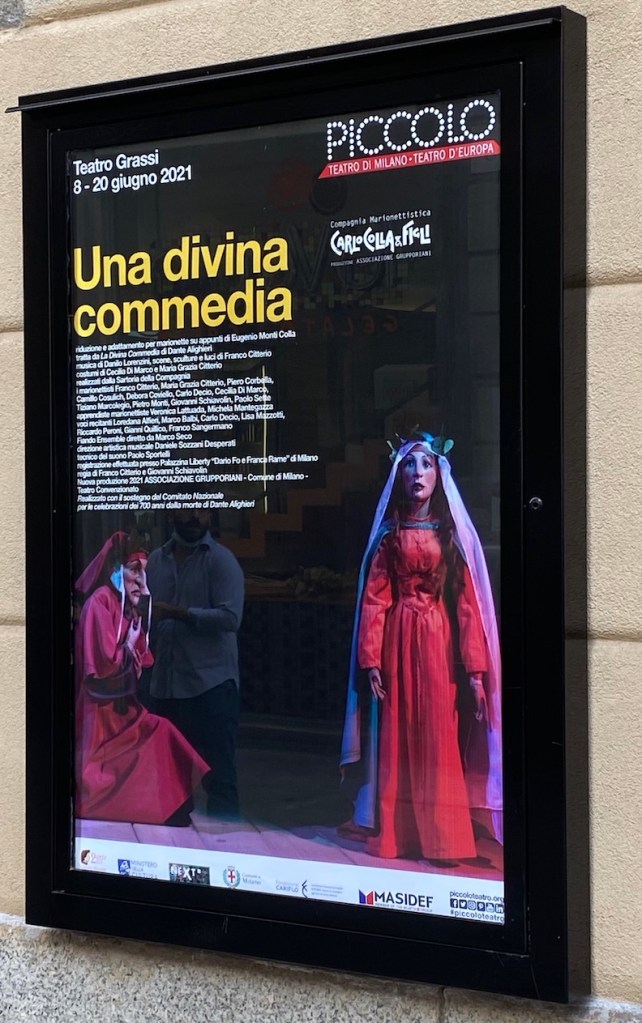 The play has the support of the National Committee for celebrations surrounding the 700th anniversary of the death of Dante Alighieri, as part of the “Dante delle Marionette” project, which also provides for the exhibition “Le figure di Dante” at the MUTEF, the Museum of Figure Theatre in Milan and the figure theatre review “Dante in baracca”, organised in June/July at the Stabilimento Base located in the Ex-Ansaldo works.