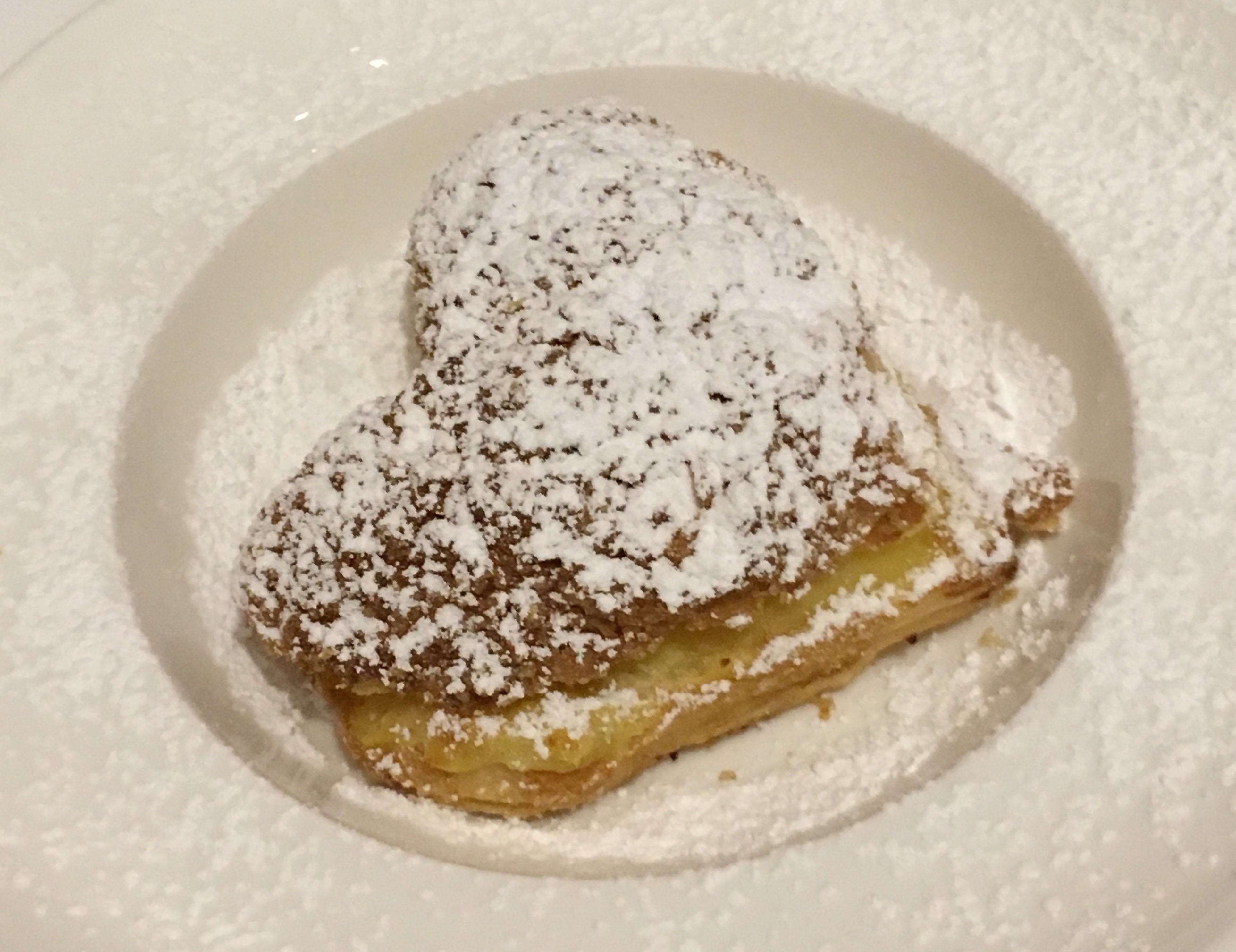 Carlo and his wife Mariella were wonderful hosts. Not only keeping me company at the table but also surprising me with a taste of a sweet heart shaped Sporcamuso, (begrime the face) a dessert so full of cream that I inevitably ended up with hot pastry cream all over my face.