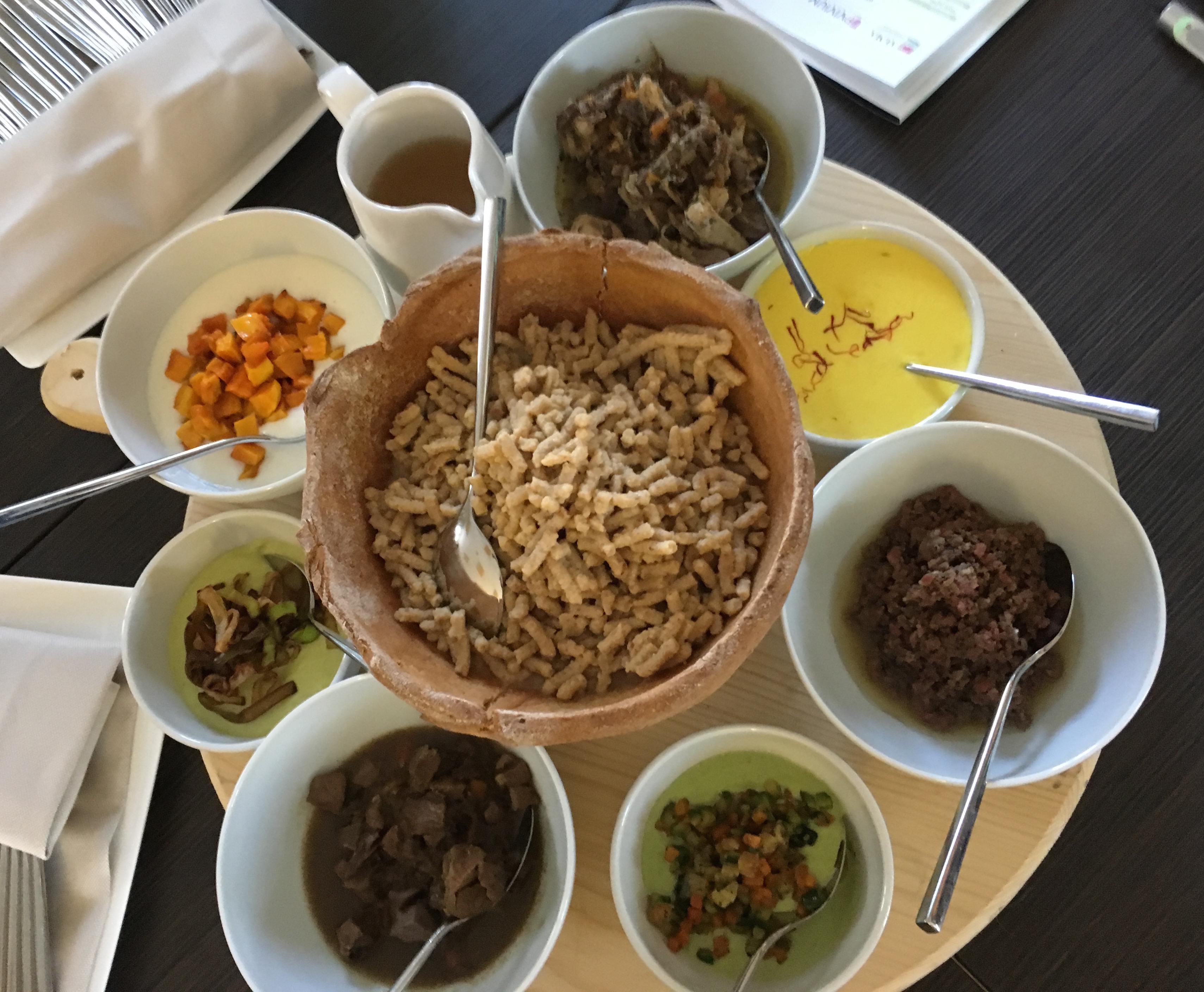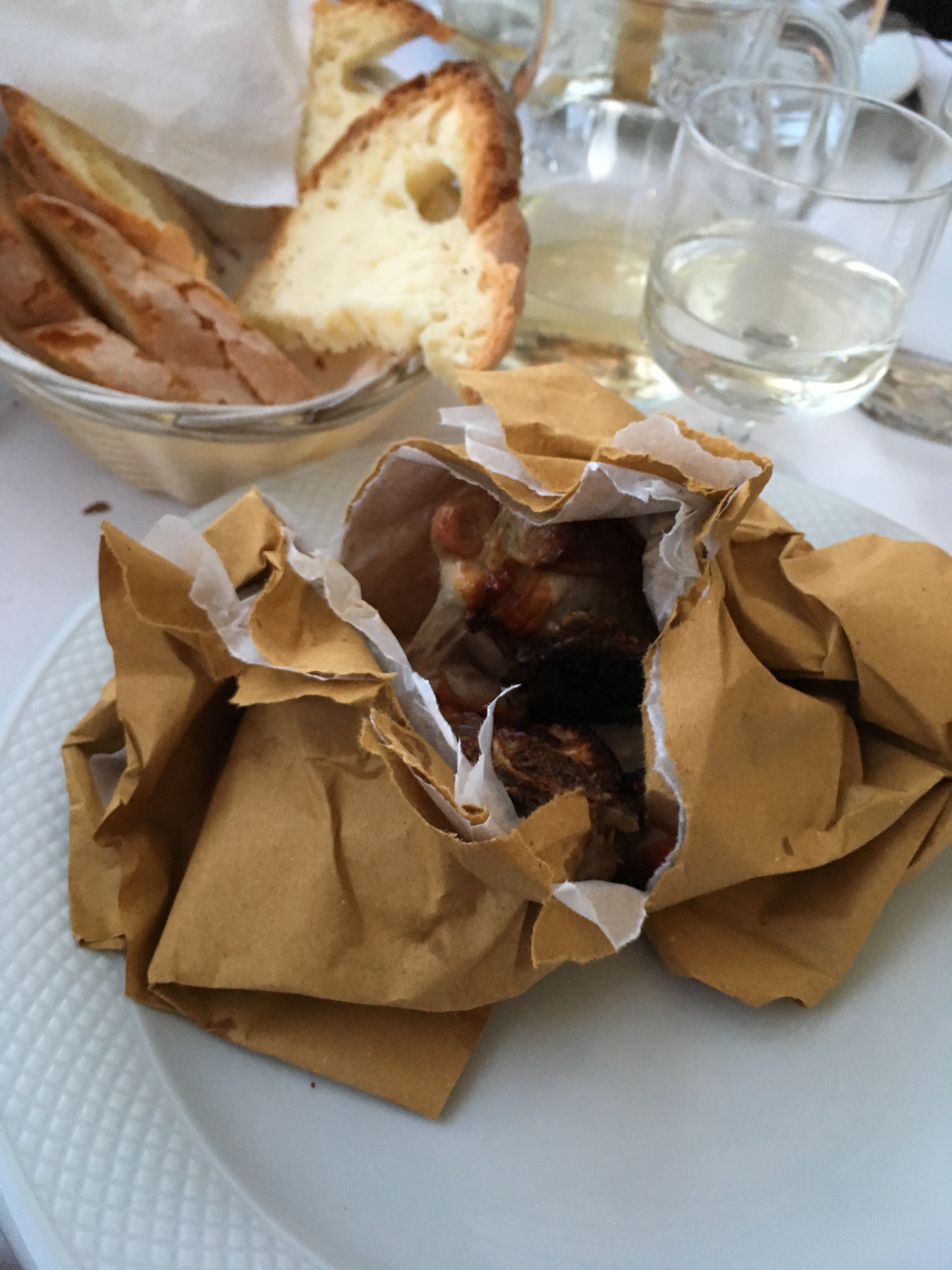 View, ambience, real food, rich menu, moderate prices and …did I mentioned the view? Welcome to Il Terrazzino, one of the oldest deck restaurant in Sassi Eustachio Persia welcomed me with a dish of local cold cuts, including my fav lampascioni, bulbs of a common wildflower in southern Italy, then I ordered lamb, and…surprise! iIt came wrapped in yellow strawpaper.