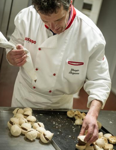 Carlo and his wife Mariella were wonderful hosts. Not only keeping me company at the table but also surprising me with a taste of a sweet heart shaped Sporcamuso, (begrime the face) a dessert so full of cream that I inevitably ended up with hot pastry cream all over my face.