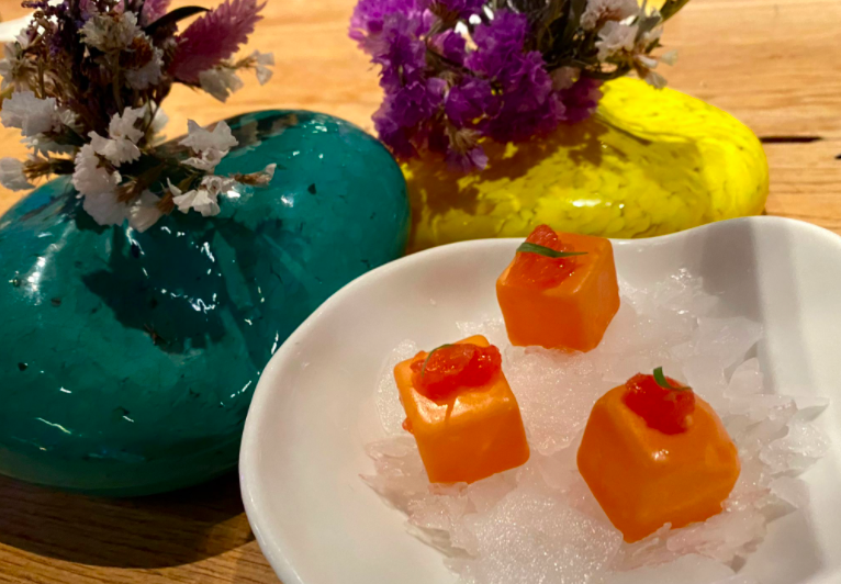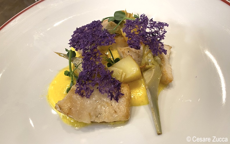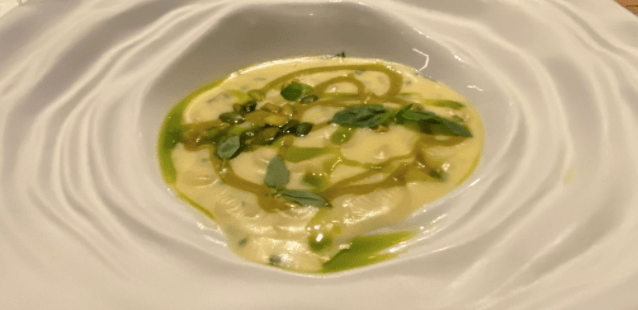 Her love for Southern Italy is revealed in the “barocco” dish, where the traditional pasta and smoked potatoes meet a pistachio pesto and a lemon powder, more Mediterranean than that……
