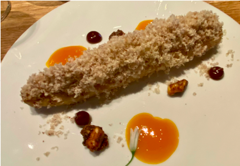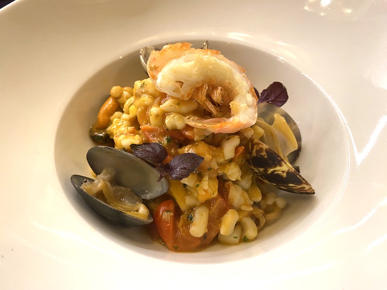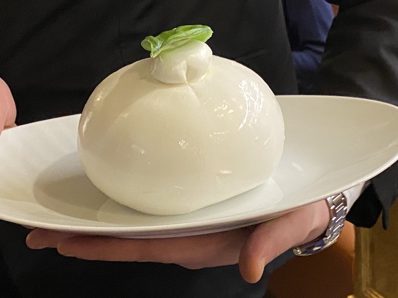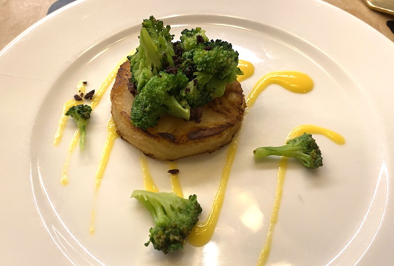 The hits of the night? Viviana hit the spot with a bouquet of salads and flowers, her “spugna di mare” mussels in hazelnut butter, Noto almonds, where the Chef runs another restaurant, and tarragon.