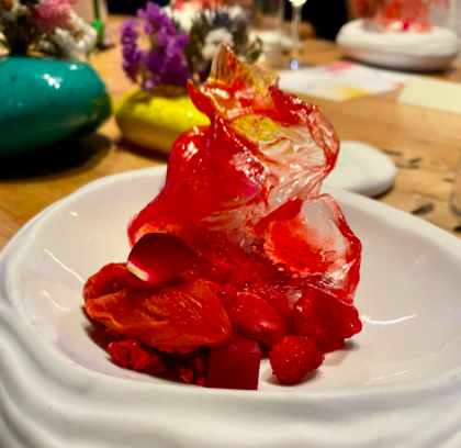 Lucia wanted to remember a particularly beautiful moment in her life, a “pink” moment and served a fantastic dessert ” La vie en rose” on the table … Brilliant!
