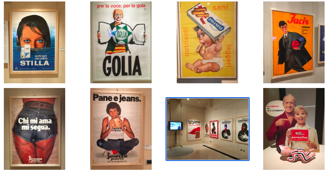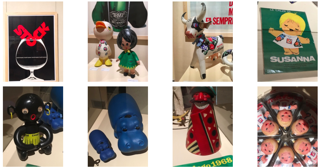 In addition to the videos, there is a rich collection of memorabia as objects, dolls, inflatables, plastic objects, postcards of the protagonists of the carousels including Carmencita, Susanna tutta Panna, Mucca Carolina and Calimero.and then again posters are original brackets, even the iconic drink Rabarbaro Zucca that, believe it or not, my great great father invented!