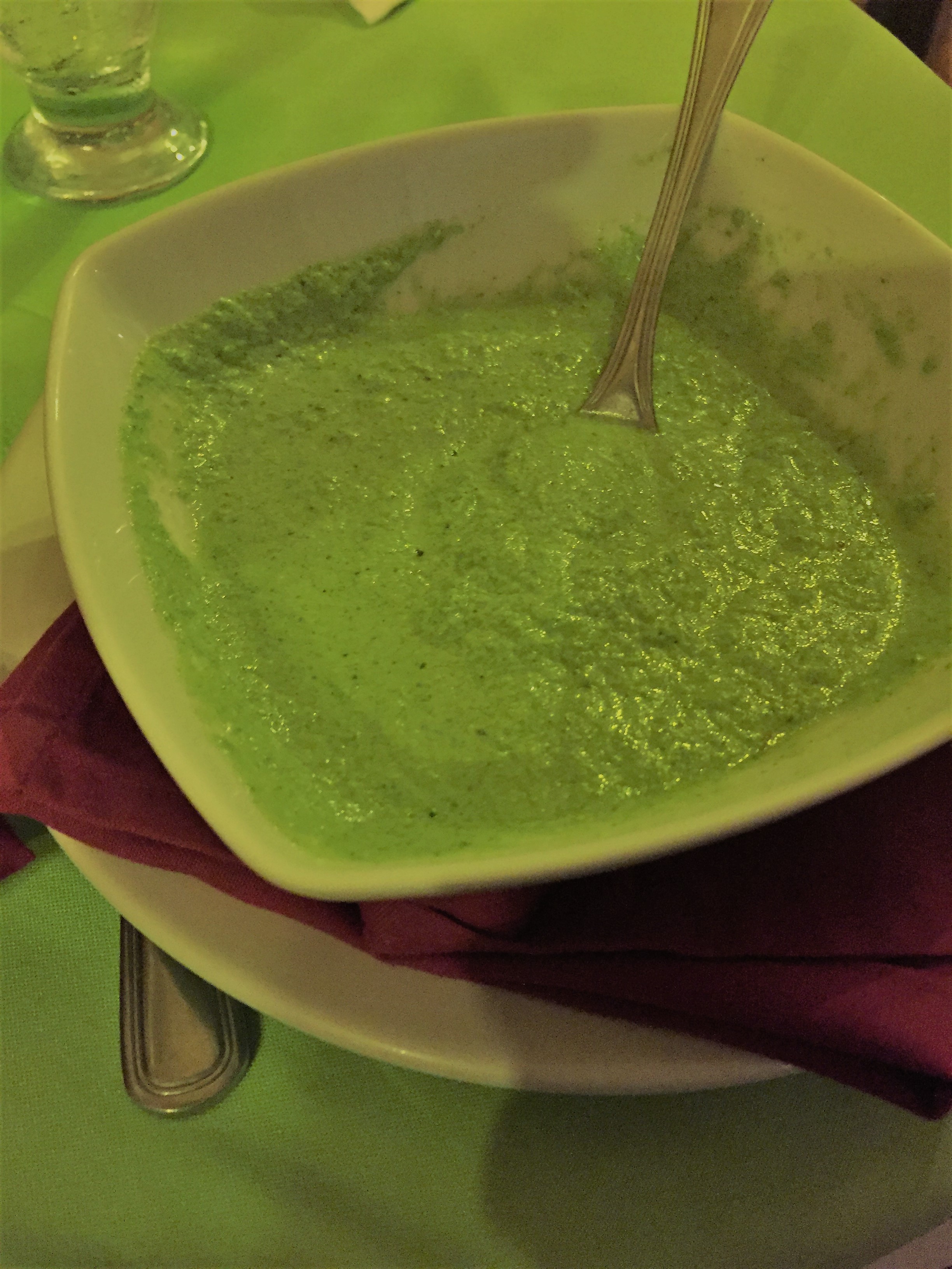 Under Antonio’s authorisation, I mix matched some of the choices, Starting with a porcini and cream on stale bread, followed a velvety watercress and Swiss chard with roasted pumpkin seeds, a broccoli cream, then the signature dish called  ‘PA-PO-BA,we can’t do without it’ (that’s PAsta, Pomodoro, BAsilico)