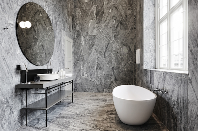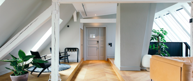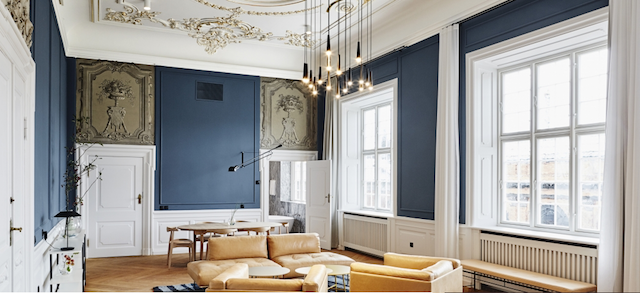 You have the Superior Suites, where the hardwood oak floor in chevron pattern together with deep window niches and flowing drapes in subtle colors gives the room a soft elegance. Finally two gorgeous Penthouses giving that luxurious loft feeling with charming rafters. Thanks to eight windows facing multiple directions, they offer an outstanding view over beautiful Copenhagen. The full penthouse floor takes up 240 square meters and is available upon request.                                                                                                  You will find a well equipped wine room, the simply luxurious SPA made in pink marble and natural wood with sauna, steam room, relax area in seducing shapes of gray. A minimalistic yet chic breakfast is served both in the lounge or outdoor terrace. You will find fresh vegetables and fruits, from avocados to berries, an excellent selection of cheeses and cold cuts, including a yummy patè de campagne