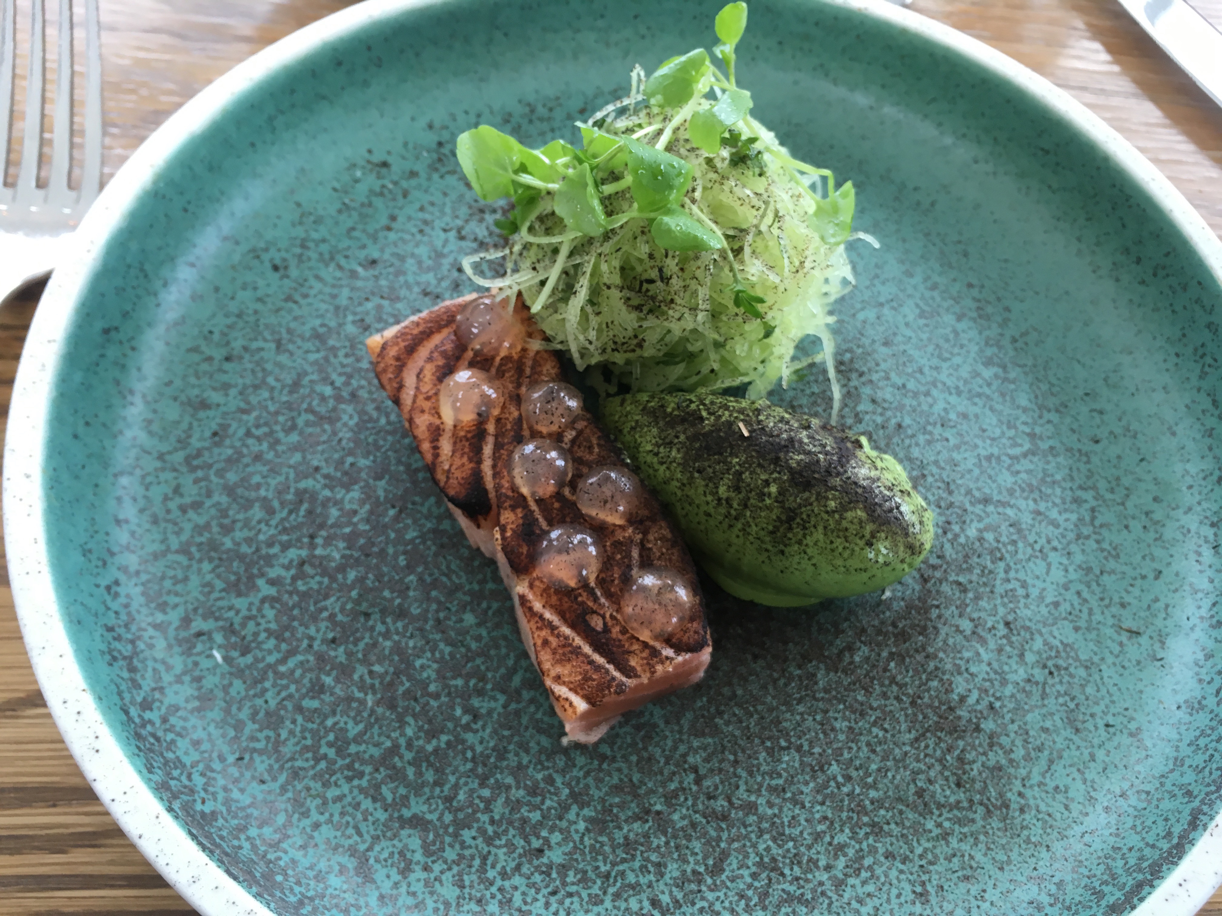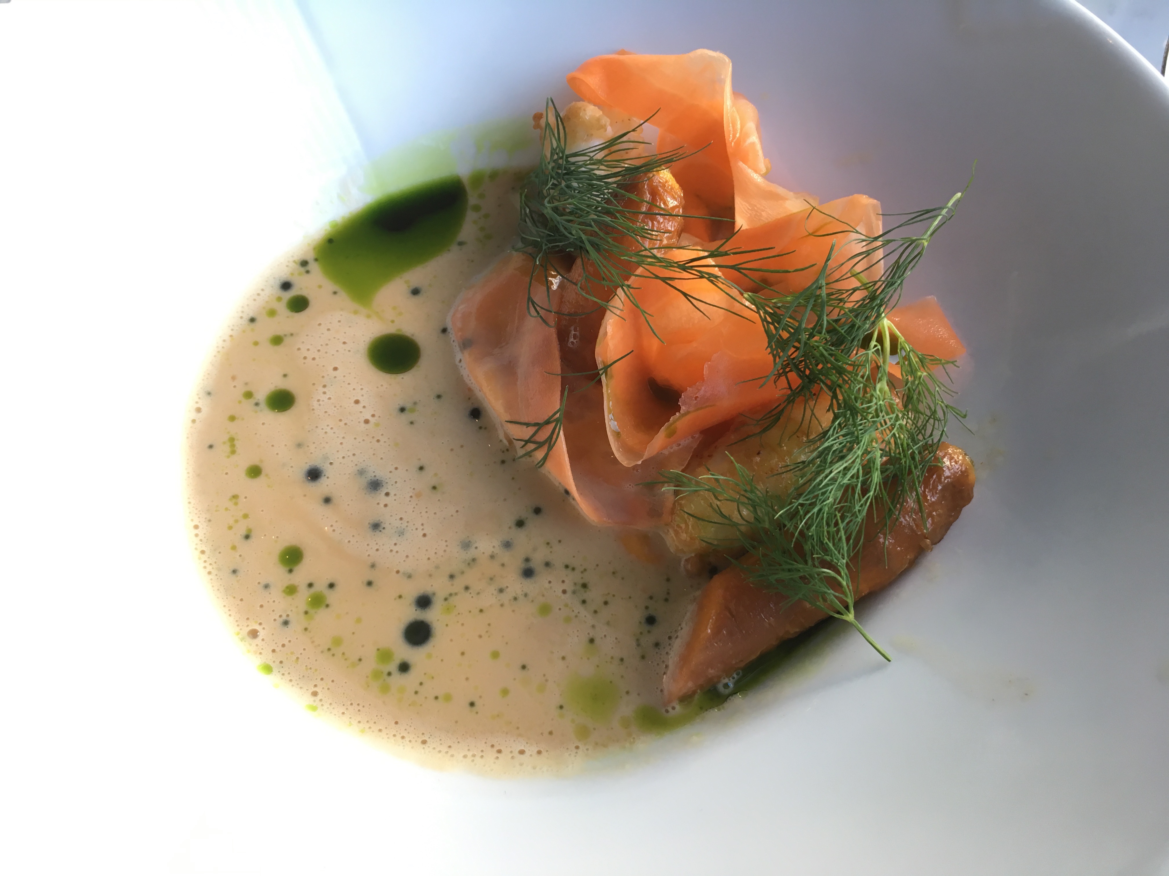 and ending with the ‘chilly’ sorbet Freddoloso (90% fennel, cardamom, cream of parsley.) As drinks a healthy kombucha (fermented tea , pine needles and cones) and a delicate smoothy with fennel extract, celery. green apple, lemon, ginger and zucchini squash.