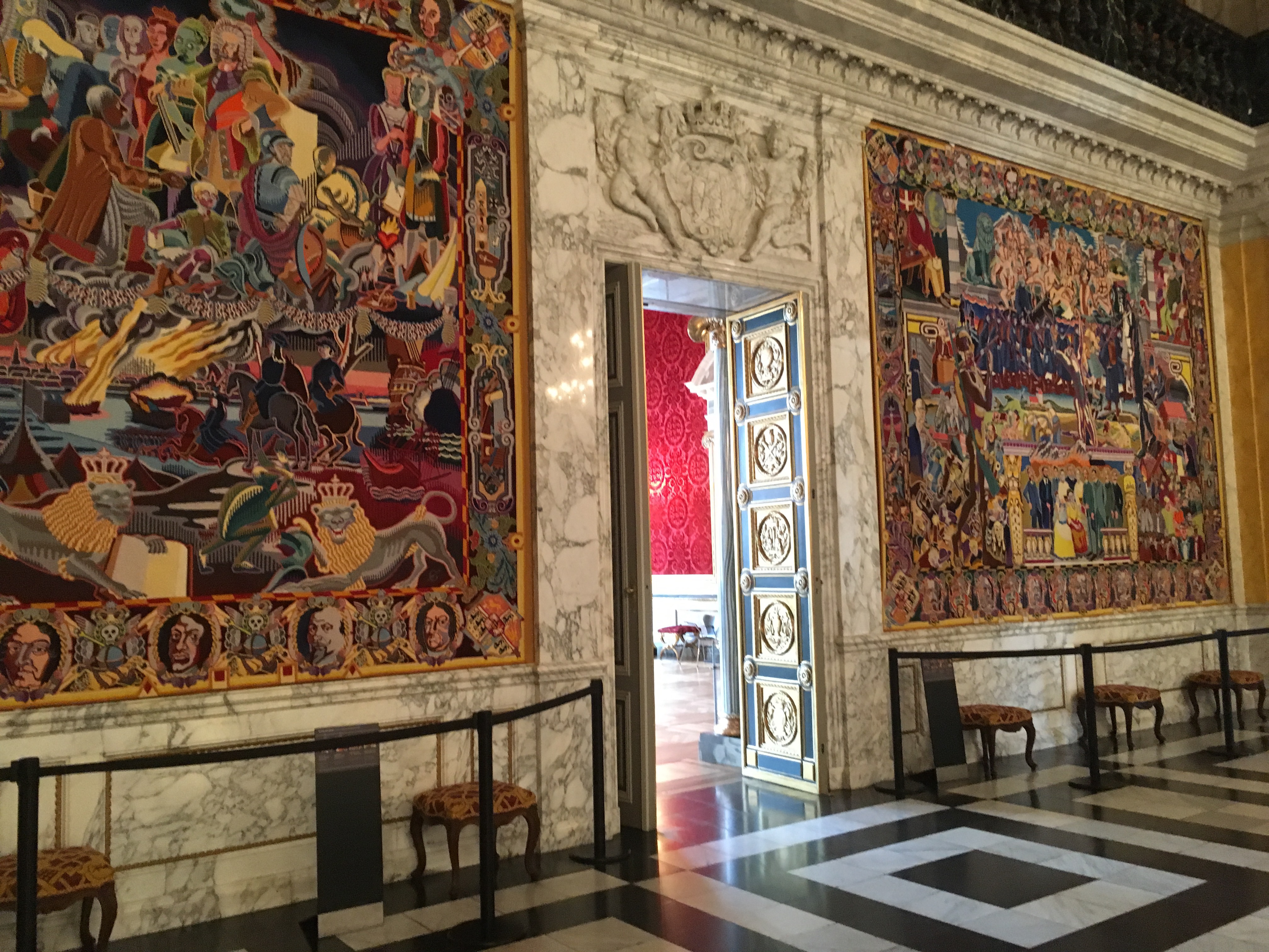 Christiansborg Palace famous for its hall covered with 17 giant tapestries, which tell 1000 years of Danish history, It is a gift from The Danish business community in occasion of Her Majesty Queen Margrethe 50th birthday,. Bjørn Nørgaard painted the full-size sketches upon which the tapestries were woven. These impressive royal rooms host the official receptions in the presence of the Queen, between a sparkle of uniforms and great evening gowns. Better to avoid arriving by car or taxi, the protocol prefers that the guests present themselves in a carriage…
