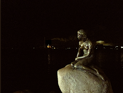 The most celebrated mermaid statue of The Little Mermaid from Hans Christian Andersen’s children’s story, sitting on a stone at Langelinie in the harbor of Copenhagen, Denmark. Honestly I saw her from the boat and I have to say that the invading ‘selfie addicted crowd’ didn’t appeal to me… So I went at night, and here she was, alone, shining on the dark, mysterious and looking like wanting to splash in the water any minute,