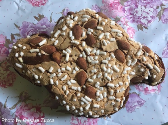 Colomba di Pasqua is a traditional Italian Easter yeast bread. It is shaped like a dove (colomba in Italian), the symbol of peace and resurrection. The birth of the colomba dates back to the year 572, when King Alboin,after three years of siege, captured the town of Pavia in northern Italy on Easter Eve. Evading the guards, an old baker was able to reach the king and offer a dove-shaped leavened bread. “Alboin,” he said, “I offer this symbol, as a tribute to peace, on Easter day.” The sweet scent and the convincing message persuaded the king to give a promise of peace.