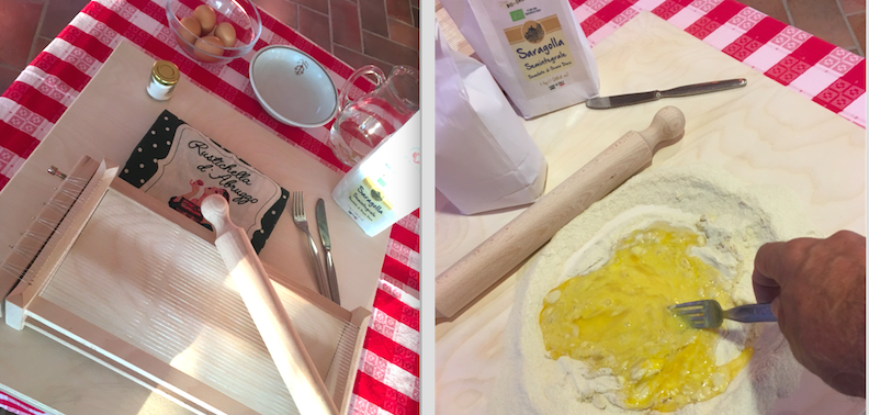 Personally, my first Abruzzian experience dates no further than last July, in spite of many trips to Italy, both for pleasure and for research on my book on the history of Italian pasta (Les Pâtes du Terroir Italien. I knew that one of the most typical shapes of pasta in the region was the long threads resembling square spaghetti obtained by pressing down with a rolling pin a sheet of pasta dough against the strings of an instruments called a Chitarra (as it resembles in some way a guitar)