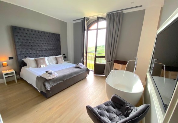 For those who want to spend a dream night, perhaps after a tour of the cellar and a rich tasting of Montalbera wines accompanied by the delights of the gastronomic excellence of the area… well, just around the corner you can stay in one of the Wine Suites, four independent accommodations where hospitality, service, privacy, relaxation, comfort and a breathtaking view are guaranteed… You will be given the keys, just as if you were at home: confidentiality and exquisite hospitality make your stay unforgettable.