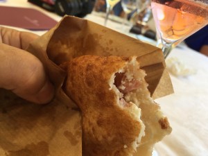 Uno snack? Macchè….”O’ Cuzzetiello” , è davvero un pasto completo, concentrato in un piccolo pezzo di pane cafone servito con il tradizionale ragù. Ci riporta al rituale culinario della domenica e un appuntamento per i più golosi. Anche nelle strade dove oggi viene proposto come “Street Food”…