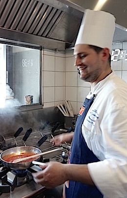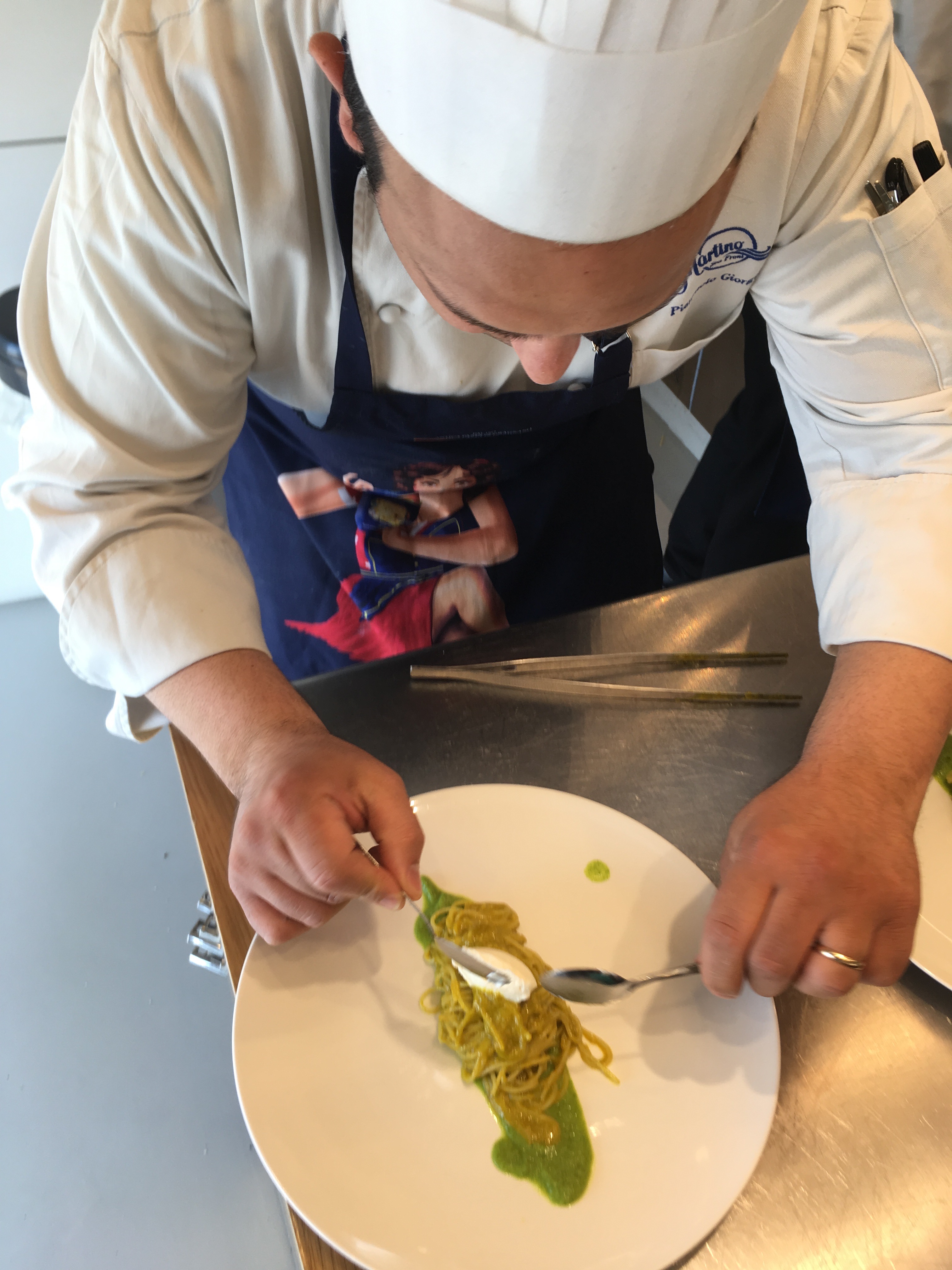 Let’s go upstairs. On the first floor you will find the open kitchen restaurant furnished with seats at the desk where you can appreciate a menu based entirely on Gragnano’s IGP Di Martino pasta, from antipasto to dessert, Under your eyes, Chef Pierpaolo Giorgio, starred Peppe Guida’s disciple and its team will prepare an amazing variety of pasta dishes.