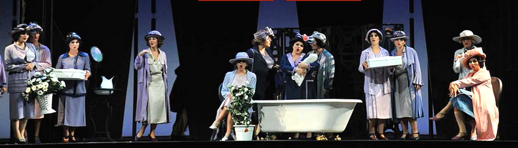Set in the magical atmosphere of Paris,the story turns around an elegant straw hat from Florence, real protagonist of a continuous paradoxical misunderstandings, exchanges of person, plot twists and naturally happy ending.Young and energetic Valerio Galli directed with vitality the San Carlo orchestra and choir. Elena Barbalich ‘s featured an animated direction, perhaps a little too horizontal, having often the big cast (nearly 40 people) all aligned on the same level, Tommaso Lagattolla‘s amazing costumes who’s palette spans from pastels from a glamorous red, black and white evening gowns number. I loved the impressive and athletic cast: Pietro Adaini, Gianluca Buratto, Bruno de Simone , Dario Giorgelè, Marco Miglietta, Roberto Covatta just to mention few, and the primadonnas Zuzana Marková, the ‘diva’ Anna Malavasi as the Baroness of Champigny, the flamboyant Anna Maria Sarra who irrevocably reminded me of the notorious Gradisca from Fellini’s Amarcord.