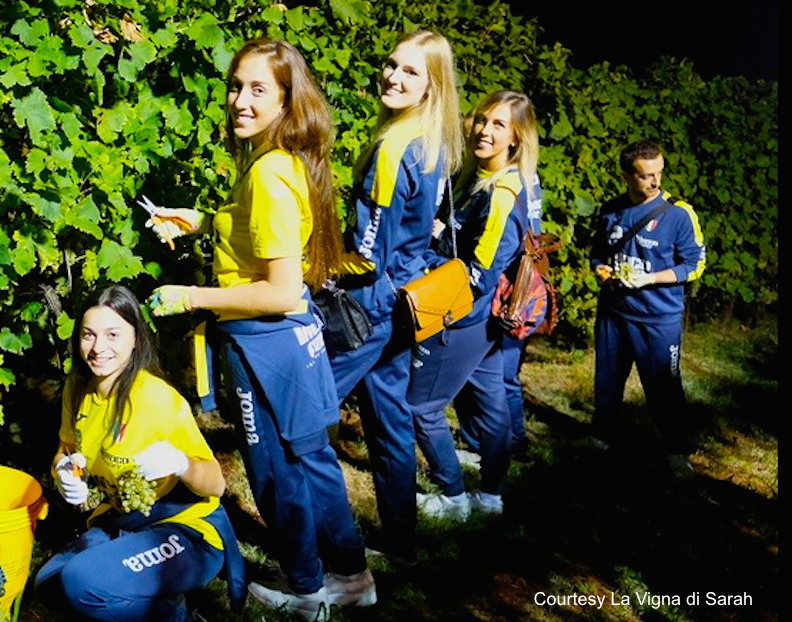 Over two hundred guest, including entrepreneurs, journalists, wine and food bloggers, public administrators, gourmet enthusiasts and a delegation from Imoco Volley, the women’s volleyball team from Conegliano which plays in A1, gathered to celebrate the all-biological Night Harvest of the “La Vigna di Sarah” farm, in the hills of Prosecco UNESCO World Heritage Site in Cozzuolo di Vittorio Veneto.