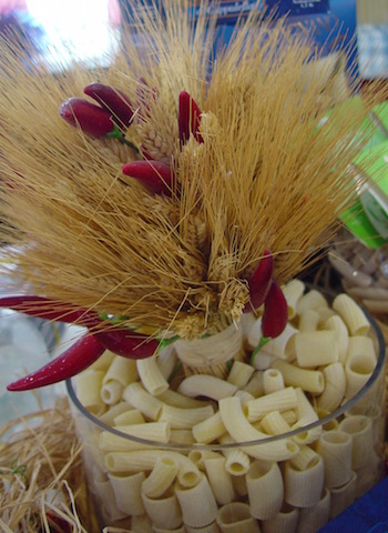 I was soon to discover that for Rustichella this celebration was “for real”, honoring the actual beginning of local wheat harvest that was going to end-up in form of semolina in their factory. With the development of local sourcing of ingredients and the “farm to table” craze, Rustichella, very smartly, developed indeed a line of pasta made only of local wheat. It is not only a marketing move, it’s an ecologically and socially responsible investment.A specific green packaging has been created for this 100% local pasta. Like a “cru” of wine, you could almost know which parcel of wheat was at the source of the handful of spaghetti you are holding in your hand. An approach very far from the industrial standardization at stake with the giant pasta manufacturers, for which uniqueness boils down to their single named brand not the actual pasta you’re about to drop in your pot!