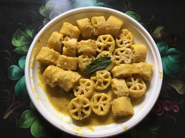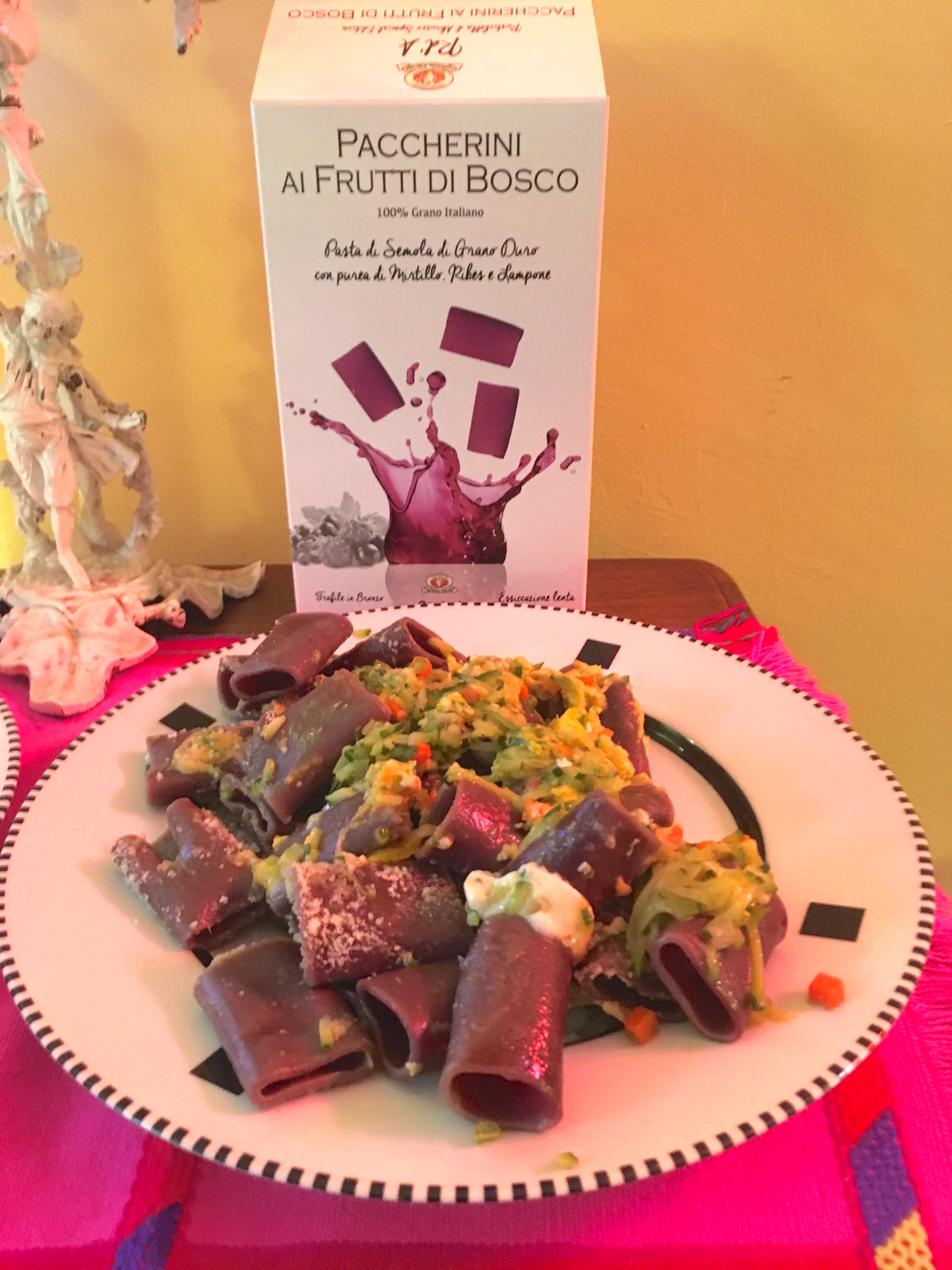 The hit of the night? the Berries pasta. I simply followed Rustichella’s suggestions written on the box and made a very successful veggie carbonara, with a zucchini julienne, eggs, pecorino cheese.