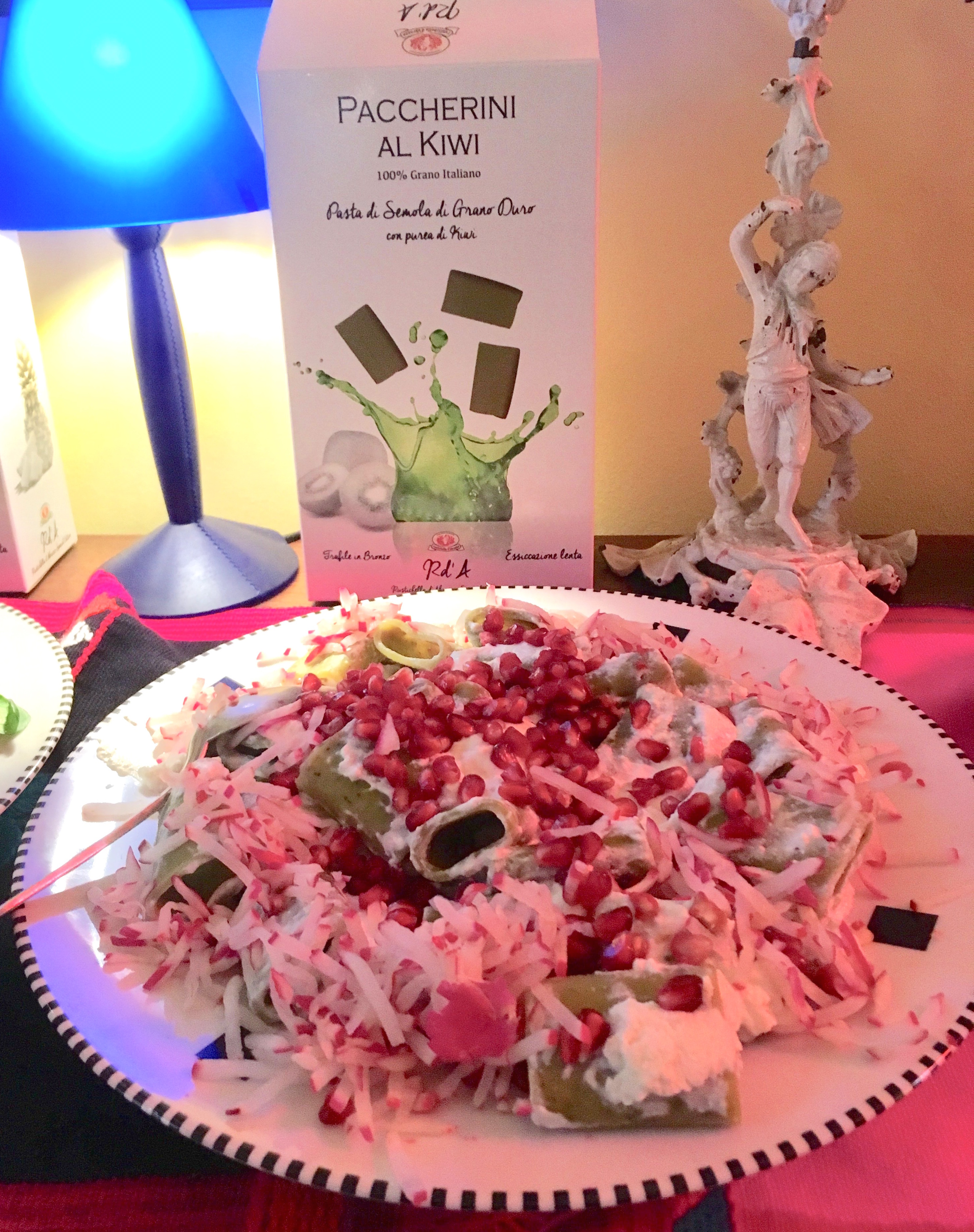 With Kiwi I went a little exotic. I made a cold pasta salad with lemon, pomegranate, black radish to which I add Greek yogurt previously warmed up.
